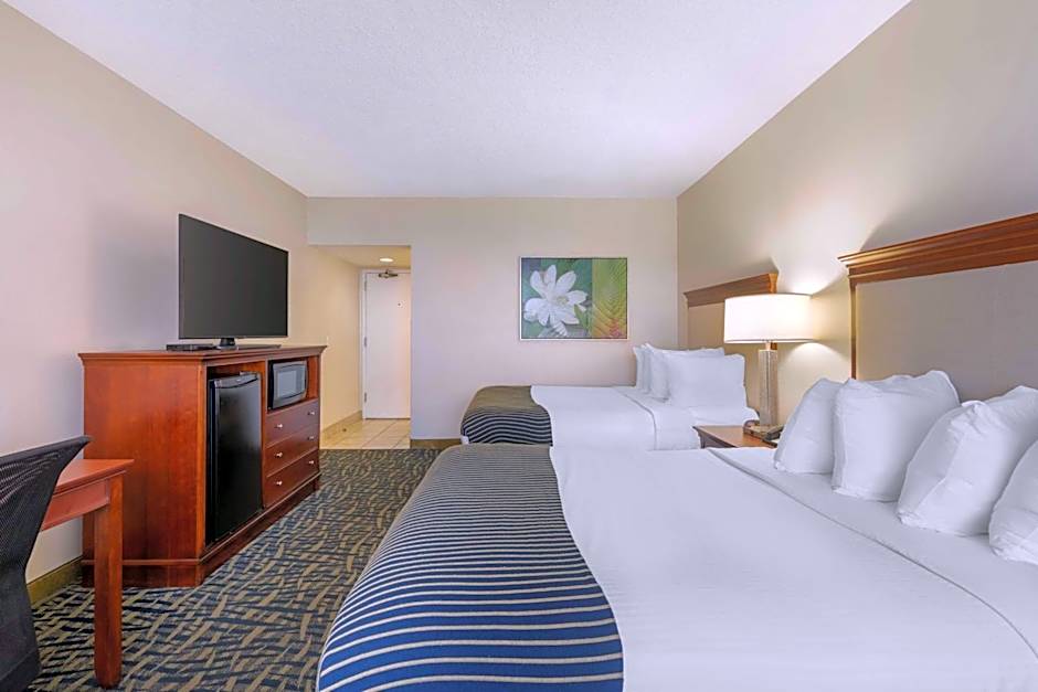 Featuring a roll-in shower, this guestroom also provides a microwave, small refrigerator and cable TV.